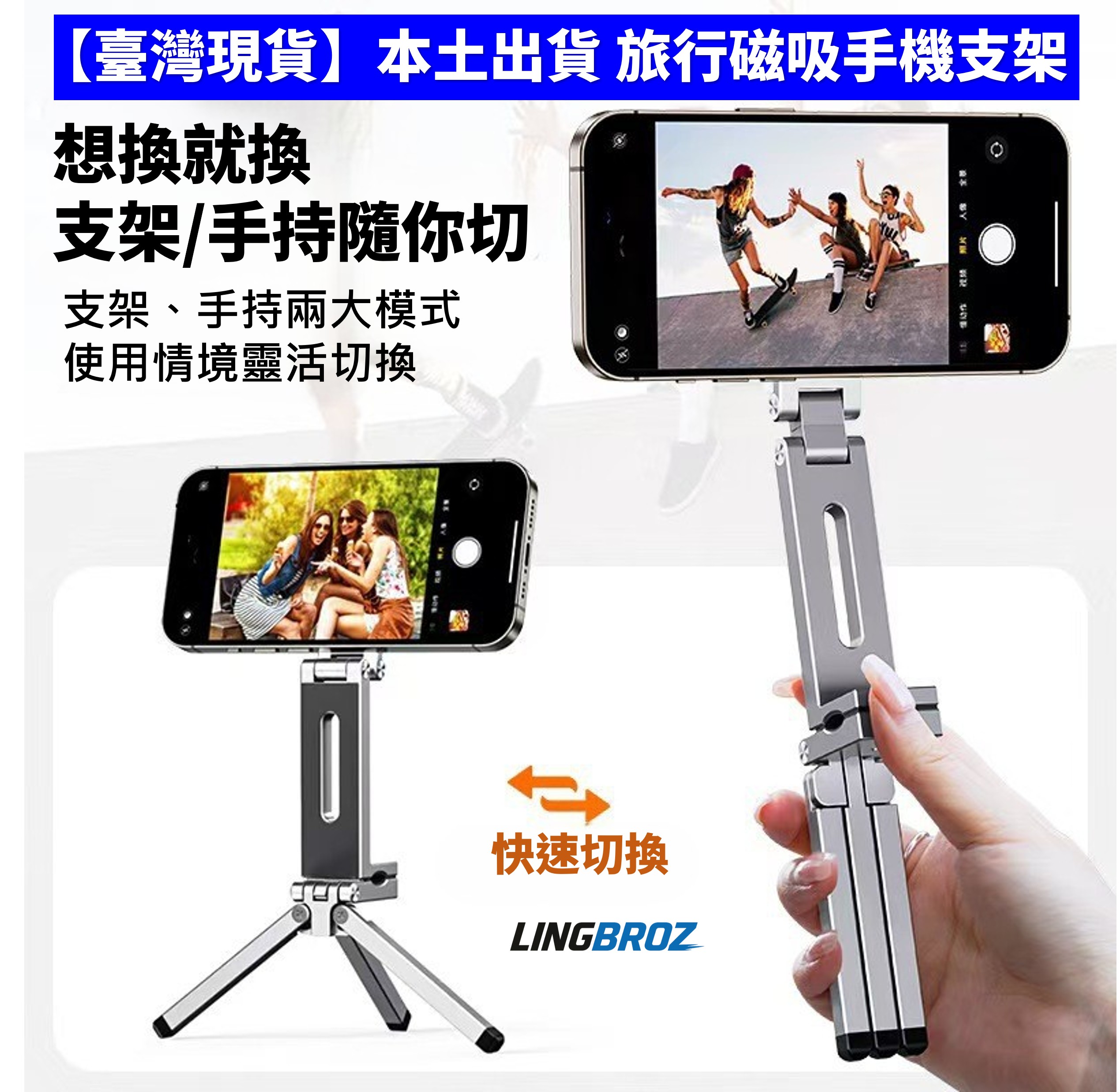✔ 多功能使用:磁吸/桌面支架一支搞定